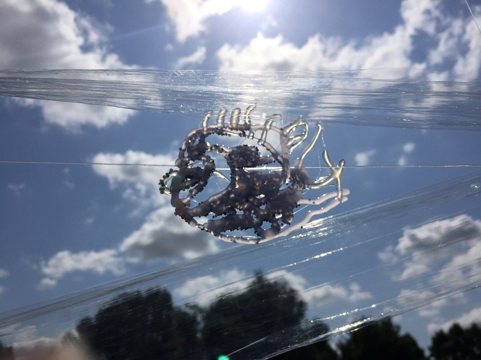 Besucher können einerseits beim Blick durch symbolische Wassertropfen - „dystopische Kugelvisionen“ (Heller) - erleben, welche ästhetischen Eingriffe mit dem Autobahnbau verbunden wären. Die ebenfalls - im fast unsichtbaren - Netz hängenden, überdimensional großen Mikroorganismen und „Zombiecyten“ (Obst) konfrontieren den Betrachter andererseits mit der für unsere Augen kaum sichtbaren, aber dennoch vorhandenen Gefahr durch Mikroplastik im Ökosystem Wasser, bei dem der Abrieb von Autoreifen prozentual den größten Anteil an der Partikelmenge bildet. Hintergrund ist auch der Nachweis, dass Mikroplastikteile über die Nahrungskette bereits in menschliche Feten und Plazenten gelangten.